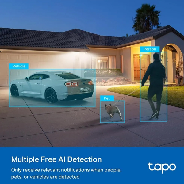 - Detección IA Integral. La IA inteligente identifica con precisión personas, mascotas y vehículos, incluyendo detección de manipulación y cruce de línea, minimizando alertas falsas y notificaciones innecesarias.
